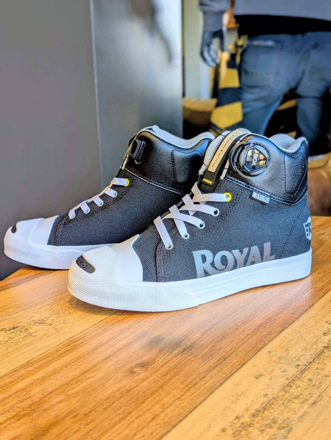 シューズはカジュアルなハイカットスニーカータイプ