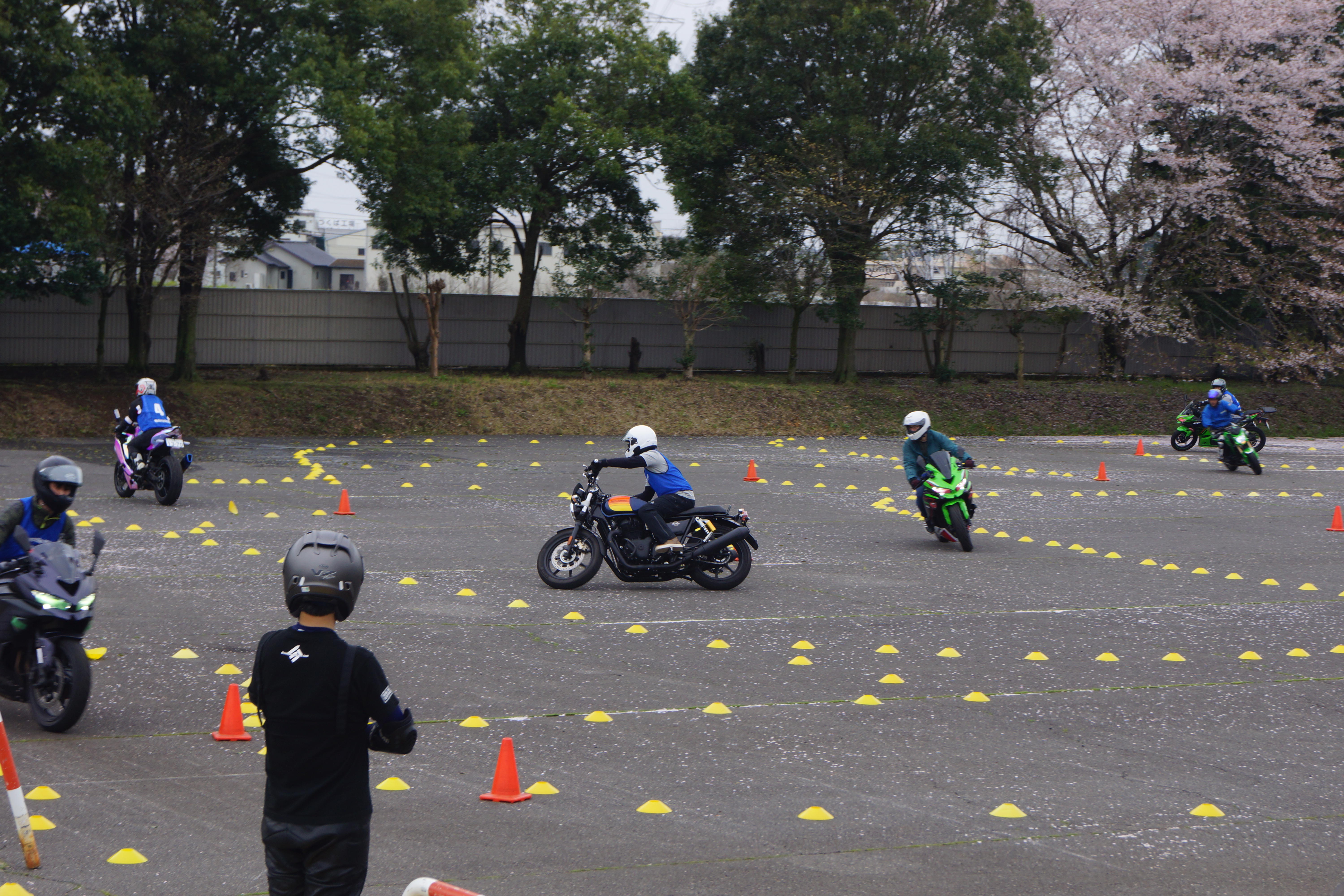 ツナギ無しのクラスは午前中をパイロンを置いてライディングレッスン